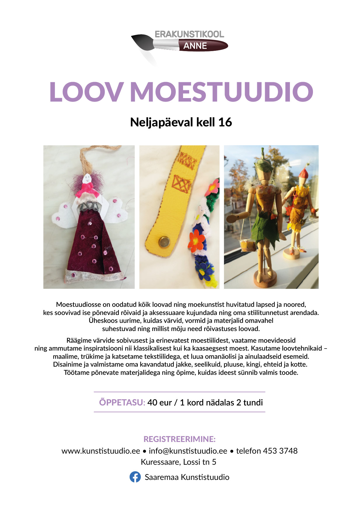 Lisaks sellele ootavad sind sõbralik õhkkond, mõttekaaslased ning võimalus oma loomingut teistega jagada ja arendada. Tere tulemast moestuudiosse – siin sünnib stiil, mis on täiesti Sinu oma!