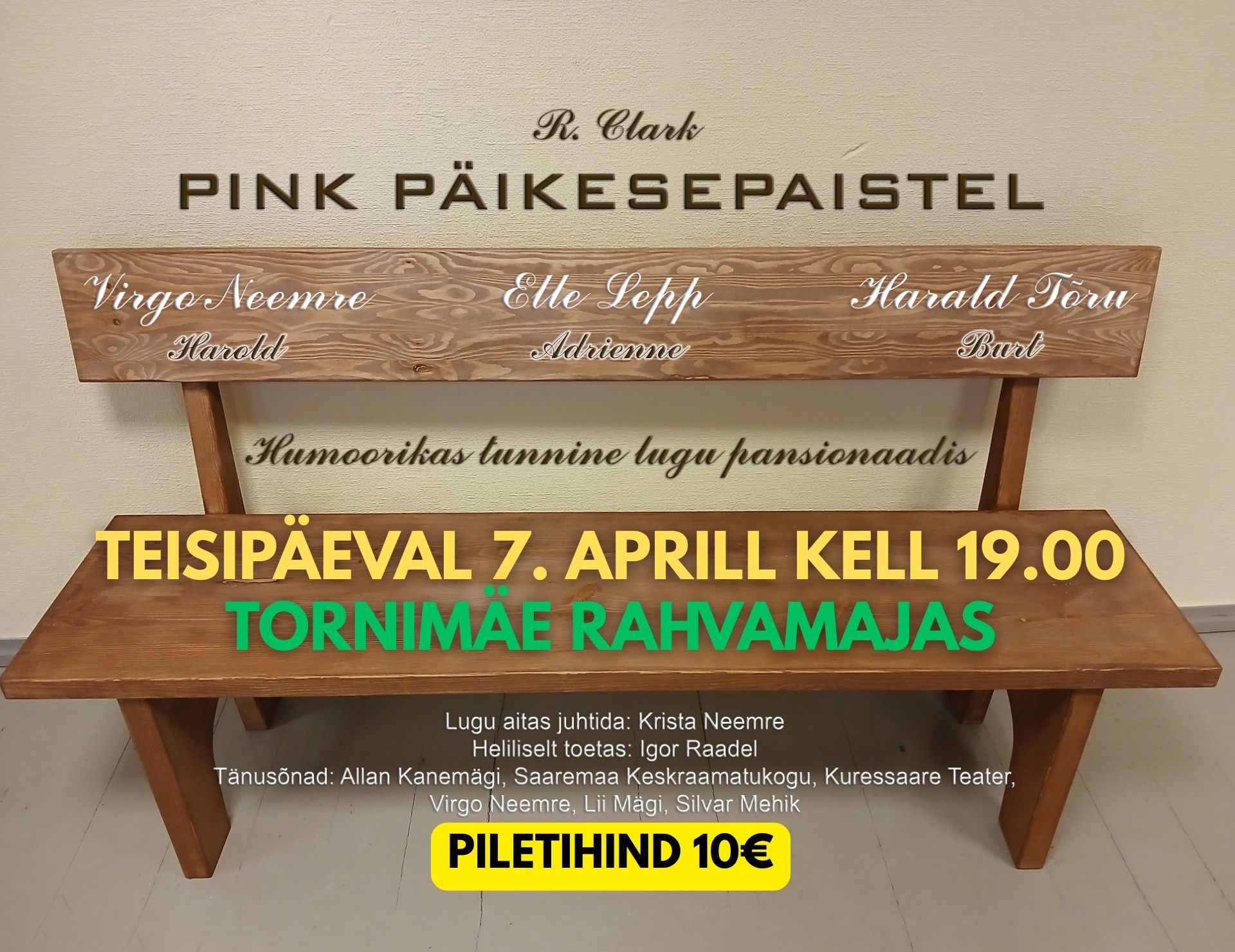 Siin ida pool, pole siiani õnne olnud, kuid nüüd on Karja Mõisateater tulemas lõpuks meile külla! Nimelt on meile jõudmas legendaarne etendus "Pink päikesepaistel"