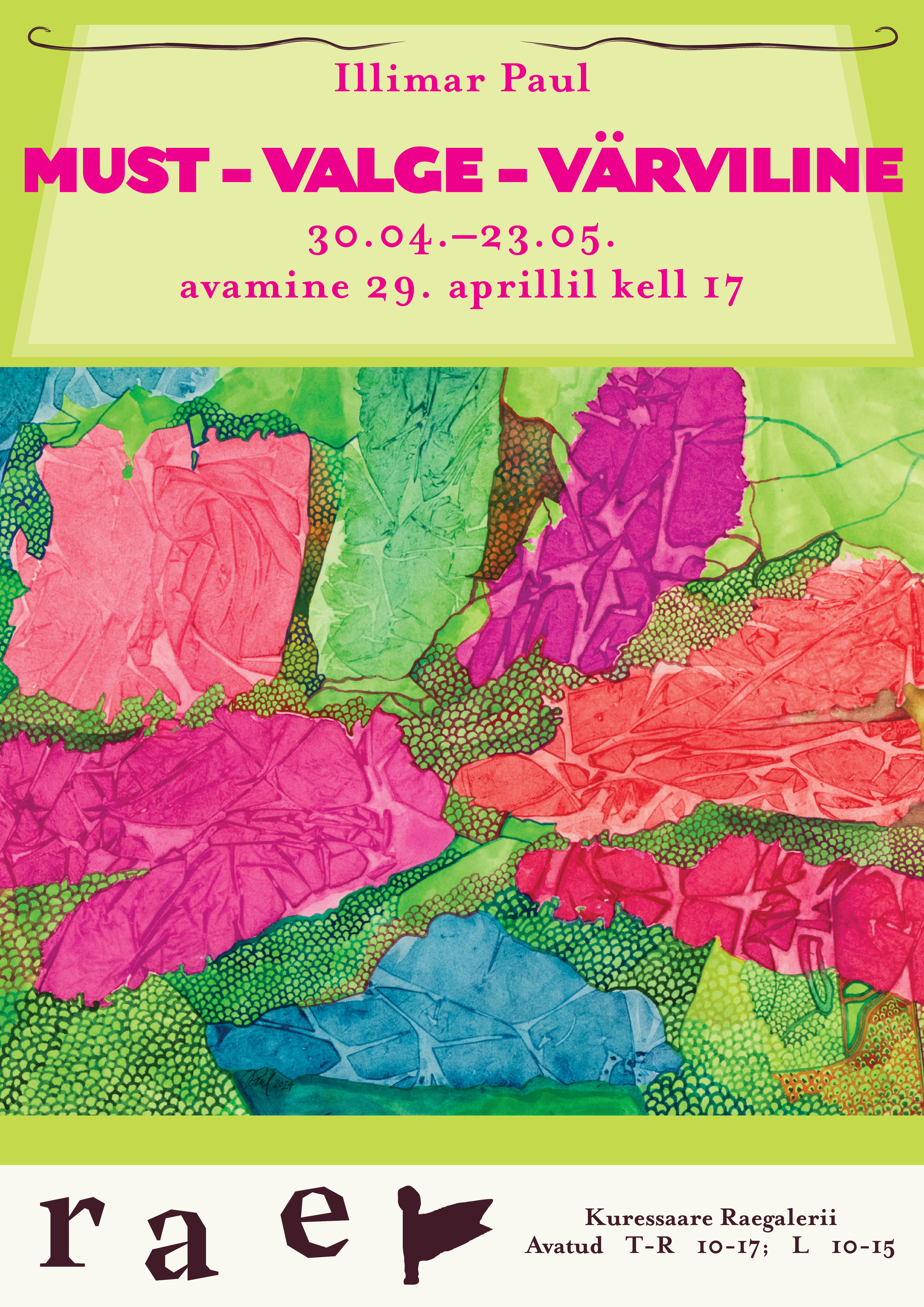 Kolmapäeval, 29. aprillil kell 17 avatakse Kuressaare Raegaleriis Illimar Pauli näitus „MUST – VALGE – VÄRVILINE“.